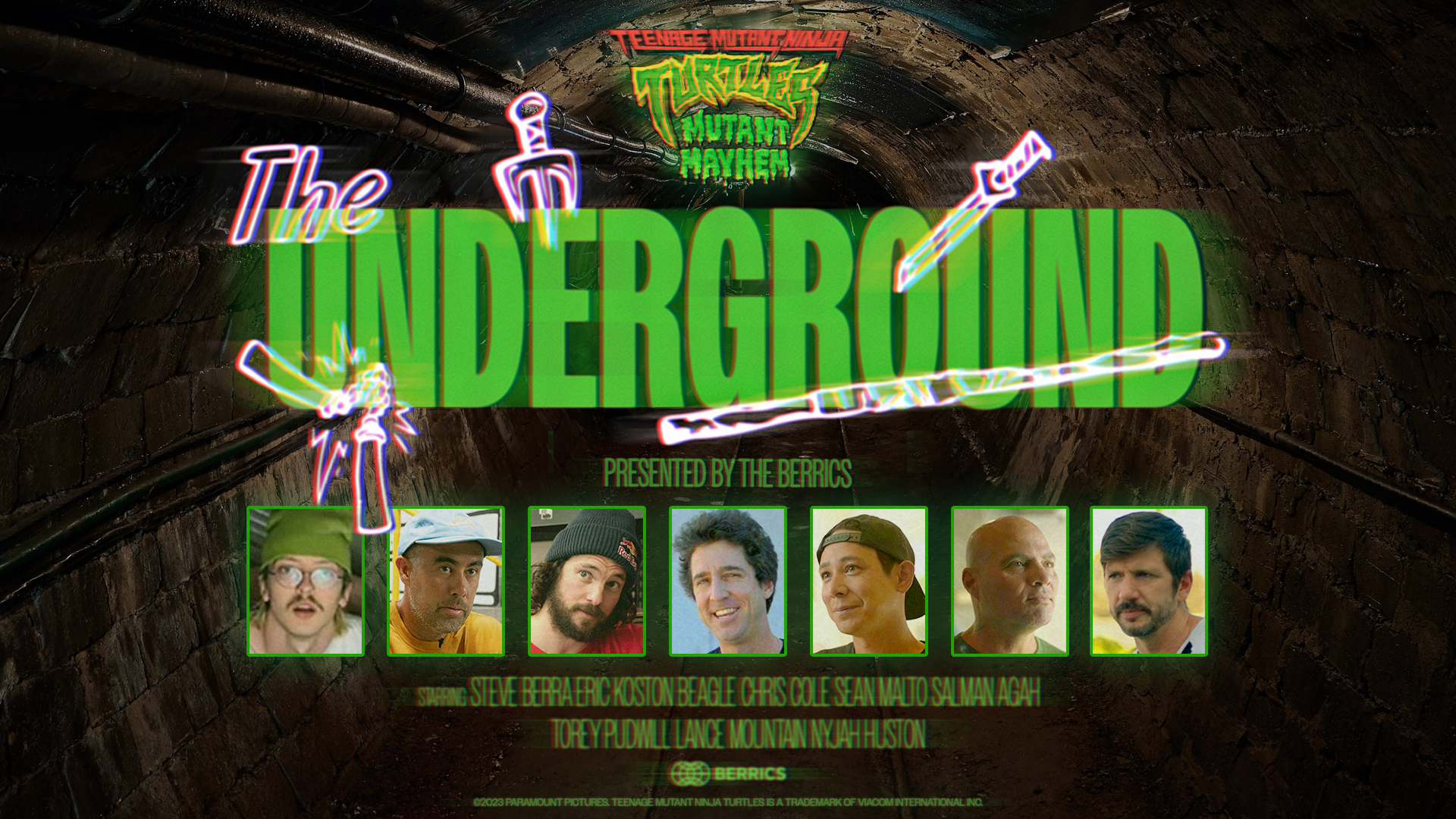 Paramount asked our team at the Berrics to develop a viral marketing campaign for the release of Teenage Mutant Ninja Turtles: Mutant Mayhem. I was responsible for Social and YouTube thumbnails, in-video title slates, and lower thirds for “The Underground”—a mockumentary promoting the release of the film.